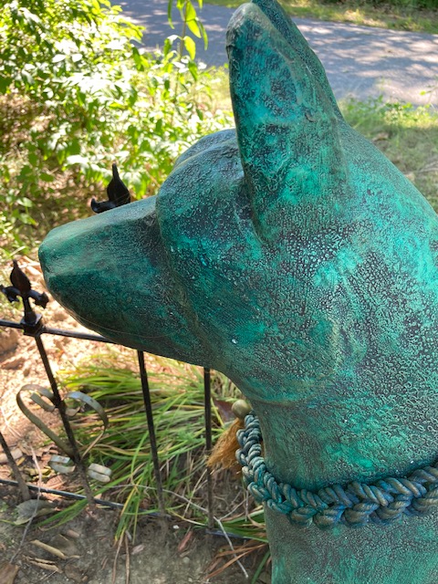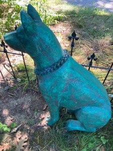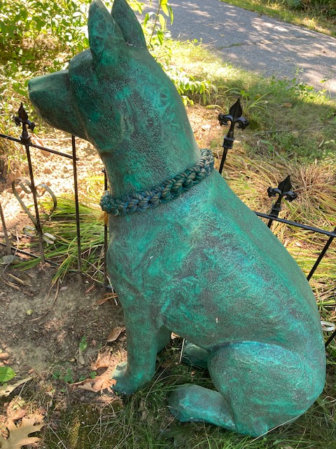 Other Info: The “statue” is very lightweight… it’s not made of resin or cement, and it’s not really a plastic either. I have no idea what it’s made of. But it was purchased at an auction, having been displayed outside, and I’ve had her outside all summer with no damage or deterioration.