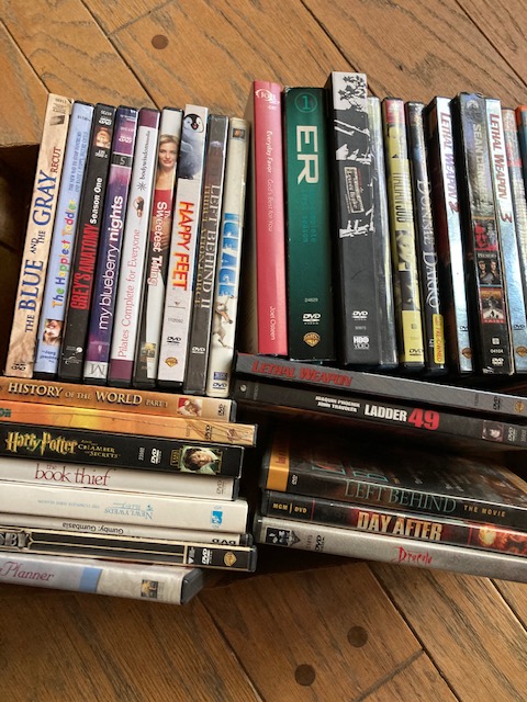Here are nearly 3 dozen movies and television series (for both kids and adults) on DVD that we collected back when we had the shop. I don’t know what kind of condition they’re in, and haven’t checked each individual case to make certain there’s a DVD in each, but the ones I did check are all intact.