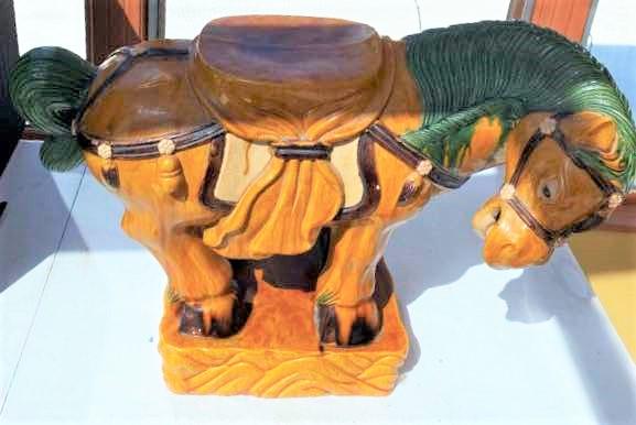 This cast-stone horsie plant stand has been on display outside in my garden all summer, since purchasing it at an auction last spring… I just haven’t had time to get inventory onto this website, and now here it is fall already!