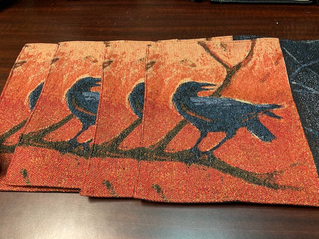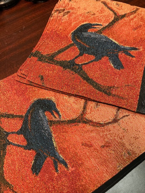 Crows (and ravens) are my favorite birds, and these stunning, high quality placemats with accompanying table runner do real justice to those bright, amazing creatures.