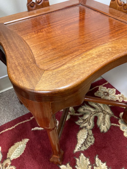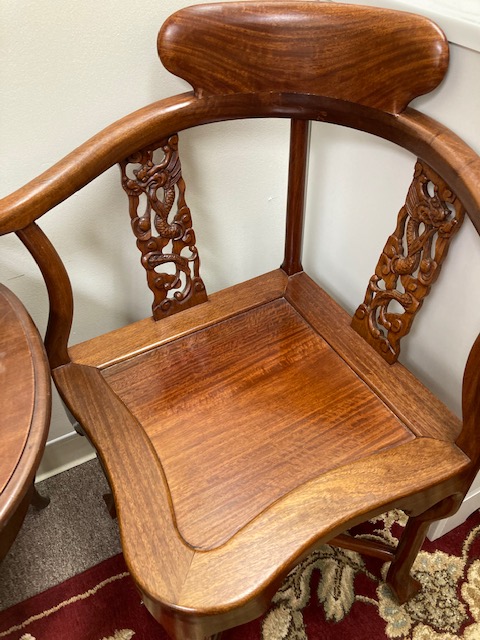 While not as eye-poppingly beautiful as the mahogany corner chairs we have in stock and available, these are still a great pair and fit perfectly into those corners where a chair is so useful and needed!