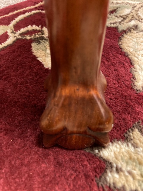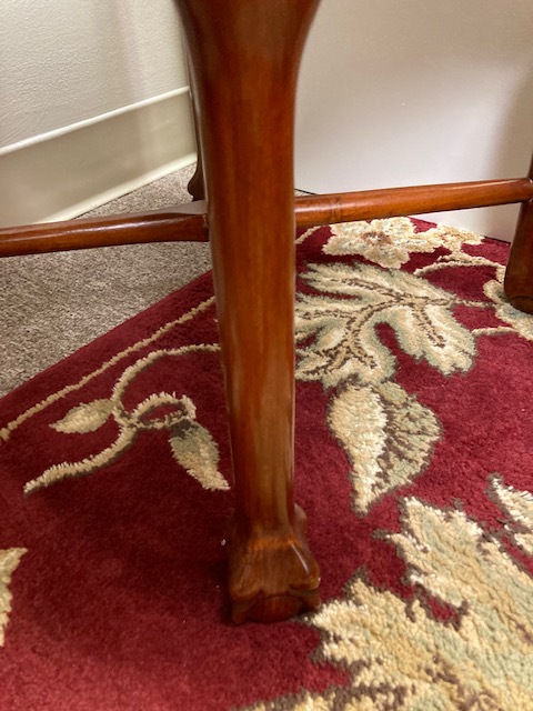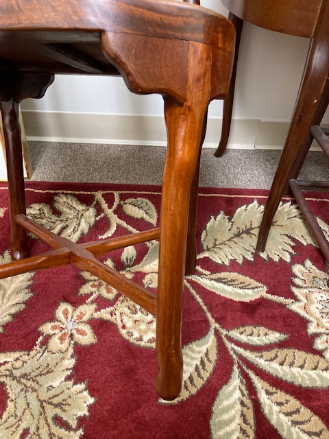 I just took more photos of the set and found that while someone had them refinished the same, they are not identical. One has straight “feet” at the bottom of its legs, the other has “knobs” or a footed appearance.