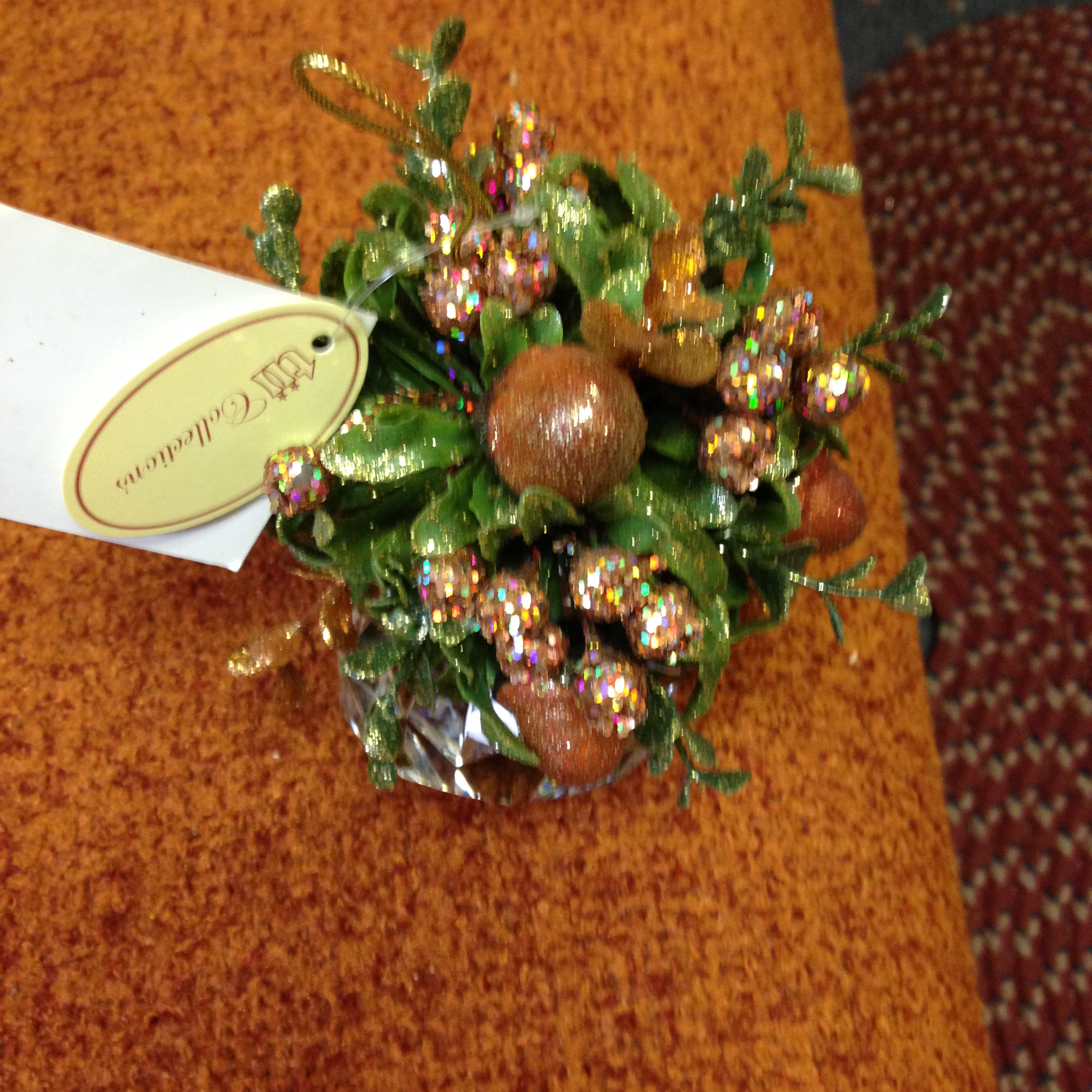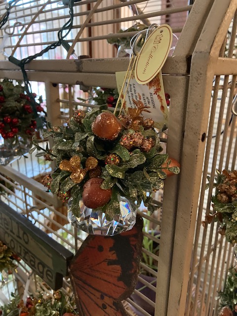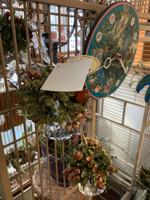 4) Christmas Mistletoe “Kissing Crystal” with a cardinal perched in the branches, and an acrylic crystal – $16.00 each (about 33% off the original price of $23.99), or buy the two we have left in stock for just $12.00 each (50% off).