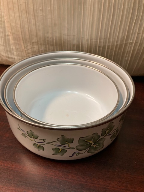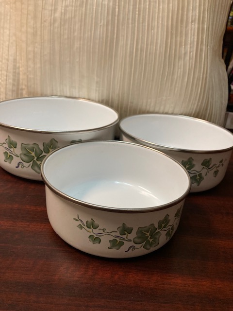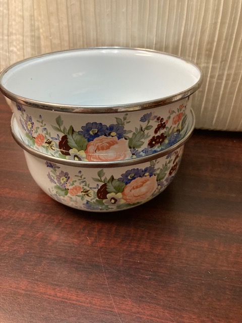 This is a wonderful assortment of vintage enamelware bowls, in different patterns as shown in the photos.