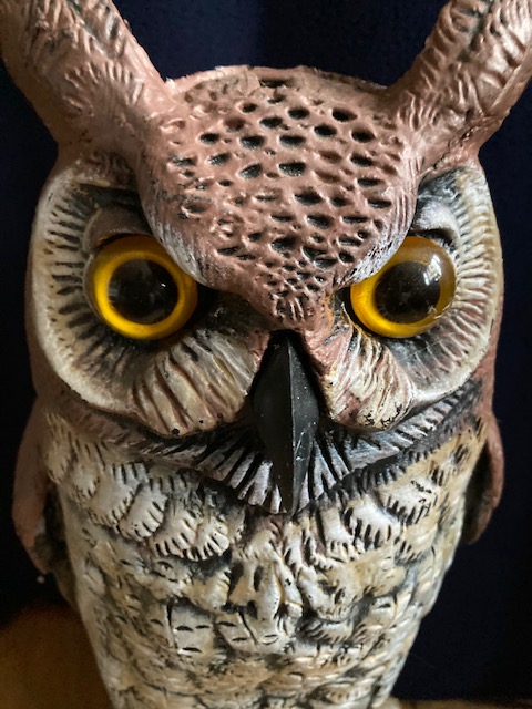 Trying to keep squirrels or or other critters out of your garden? Why not try a plastic “scare-owl”? (I call him Junior. Yeah, if you’ve read my other posts, you’ll know I tend to name such things.)