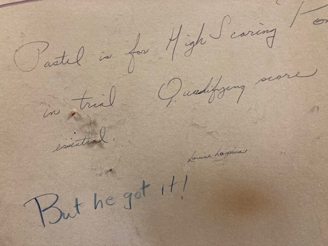 Unfortunately, Louise wasn’t able to shed any further light on this pup who apparently did so well in whichever competition it was over 50 years ago. Given the number of paintings she has produced, and the fact that this was done more than half a century ago, that should be no surprise!