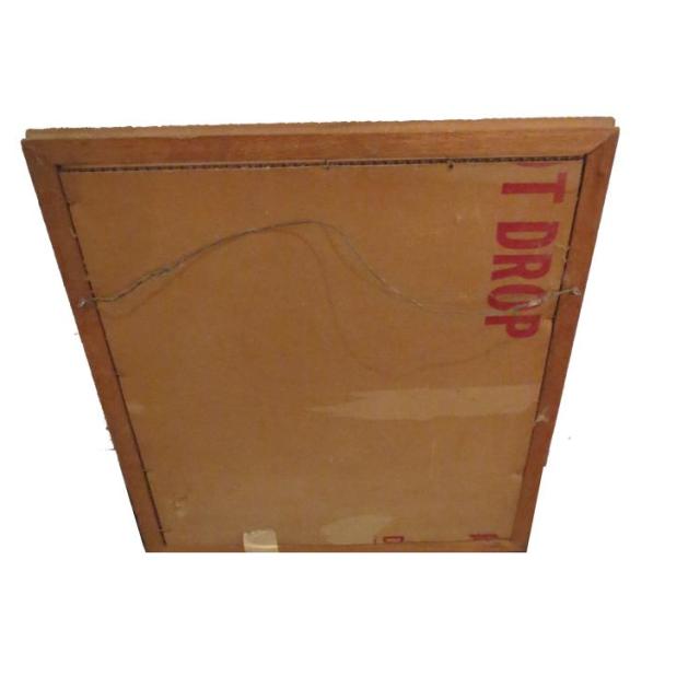 Condition: The wood frame is in excellent condition, as is the print. The backing seems to have been replaced at some point, as it’s been taped in place. The print is somewhat loose in the frame.