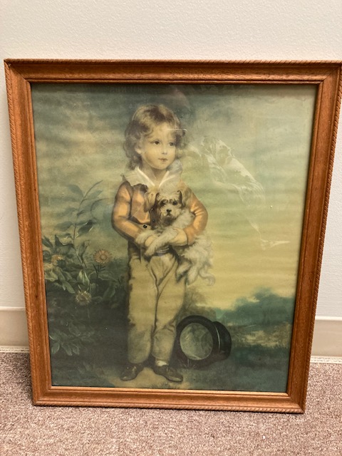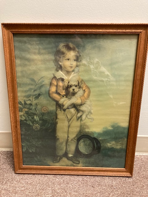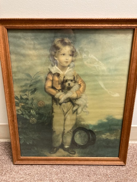 This particular piece has been identified by several different names, the most common of which is “Chums”, referring to the relationship between the boy and his dog. There’s another of a young girl and her cat, which is often paired with this one.