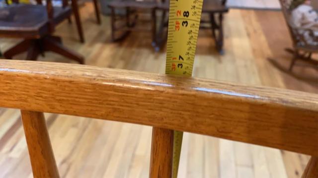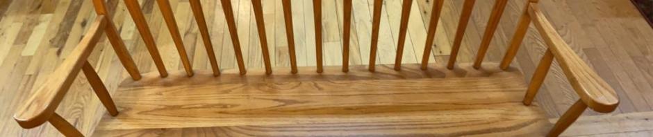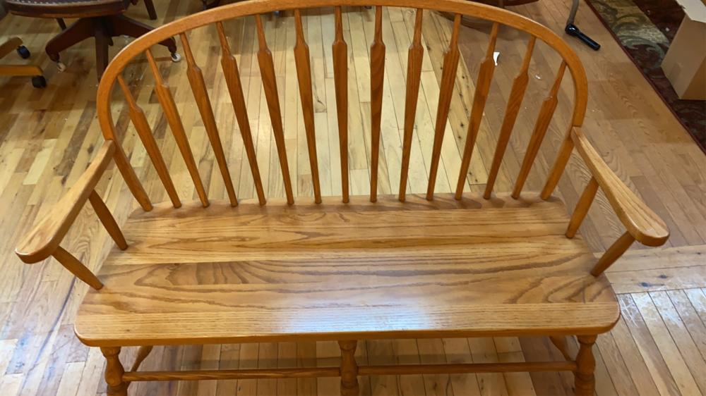 This is a high quality Windsor style oak bench; it’s well built and very solid. More photos to come.
