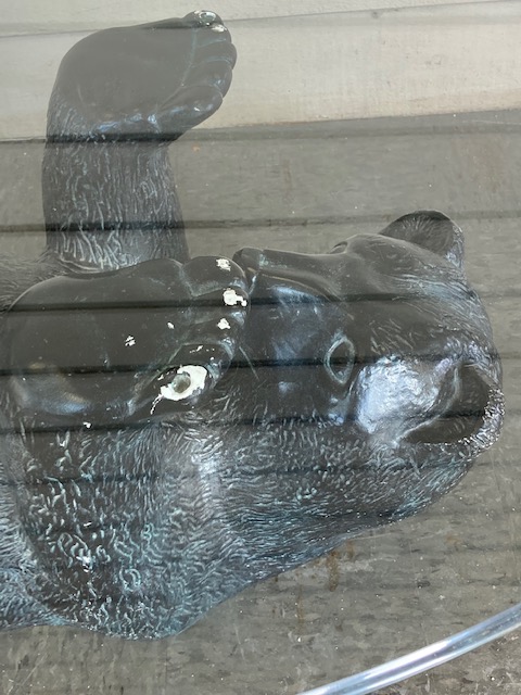 The one other problem is that the felt or cloth backing on the bear’s back (where it meets the floor) is missing. It might be a good idea to replace it, although there’s probably no real need.