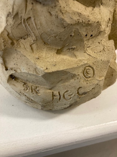 We don’t have a good sense of the age of Upright Pig. Is he vintage? Is he more recent? And frankly, we’re not even sure if he’s supposed to represent a character from a book or movie… Apparently he was someone’s creation, as there are initials etched in the base, and he appears to be made of a fired clay (?). He needs a name but I’m kind of at a loss on this one and so far, am just calling him “Pig“.