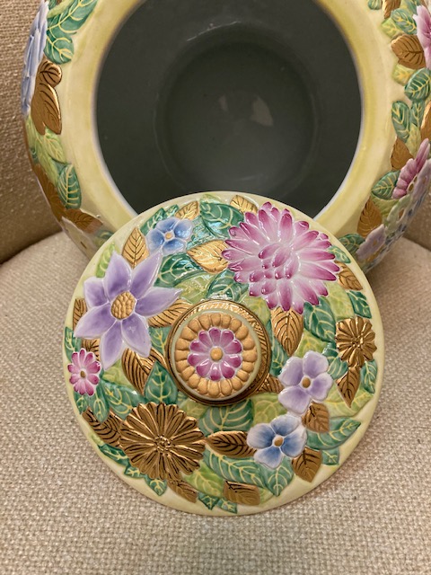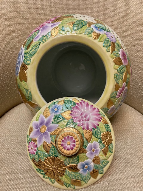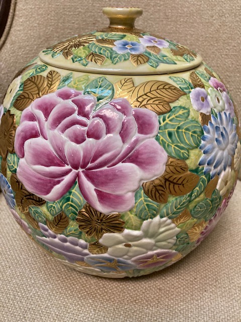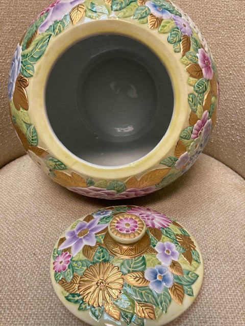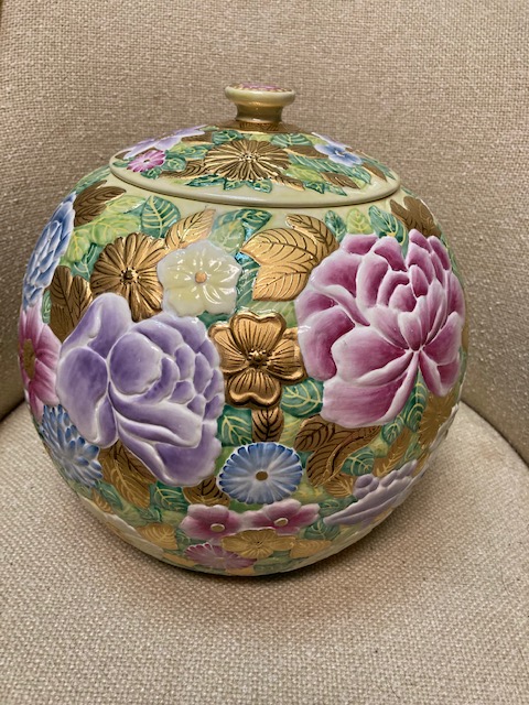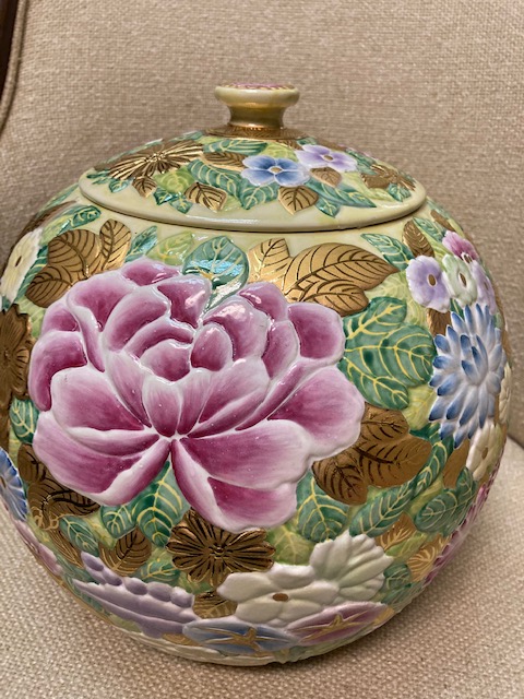 Although it was described as a “Chinese cookie jar” by the source I got it from, it’s not Chinese and probably was never intended as a cookie jar – although it’s certainly large enough to hold many dozens of cookies.
