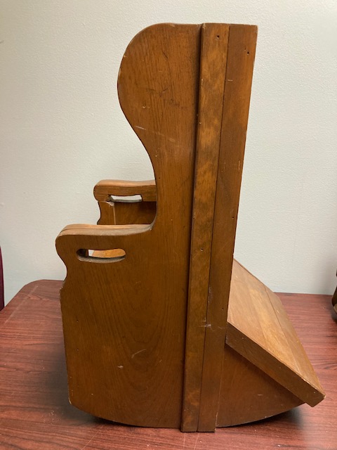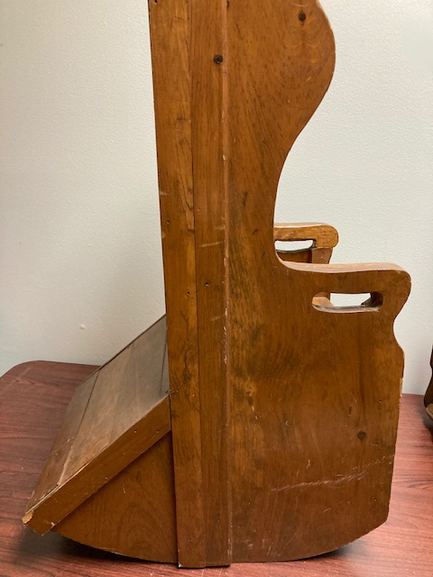 According to one internet source, “pouting chairs” were originally built by German immigrants who settled in Pennsylvania during the late 18th and early 19th centuries. I found a similar chair – not a rocker – on-line for over $300!