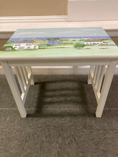 … Small white table with handpainted scene