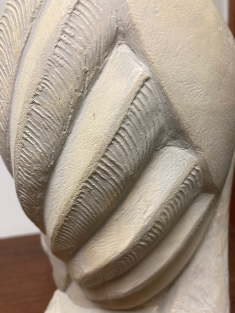 Dimensions: About 10″H. (I got the dimensions of about a dozen pieces of inventory, wrote it all down and then promptly misplaced the sheet of paper. Will have to remeasure when I get back to the office, and update this post!).