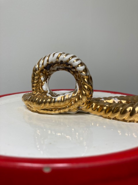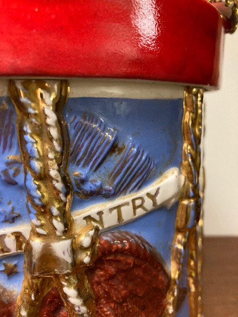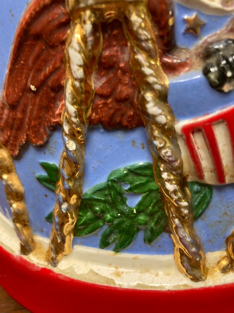 If you love Americana type decor, here’s a cookie jar that will fit right in! (And if you haven’t already, take a look at our 1950s Americana drum lamp, with a similar theme: https://heritagecollectiblesmaine.com/2020/11/08/1950s-americana-drum-lamp/.)