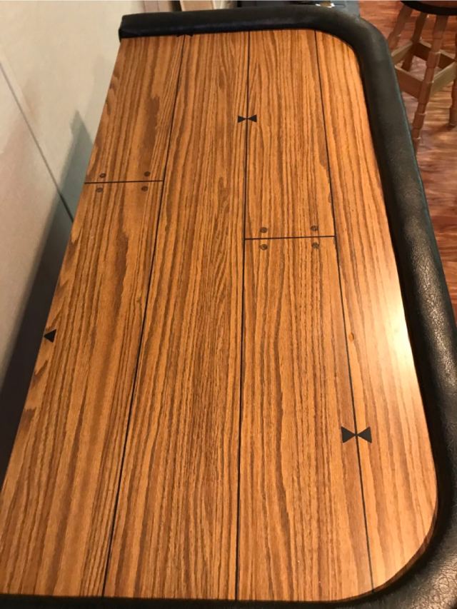 We are told the swivel stools are comfortable and stable and the set is in good condition. The diamond, argyle-like pattern of the Naugahyde upholstery (the pattern is repeated in the 4 pictures to hang behind the bar), adds even more to the fun and funky retro lounge feel. This is not a set for people who have a more formal lifestyle.