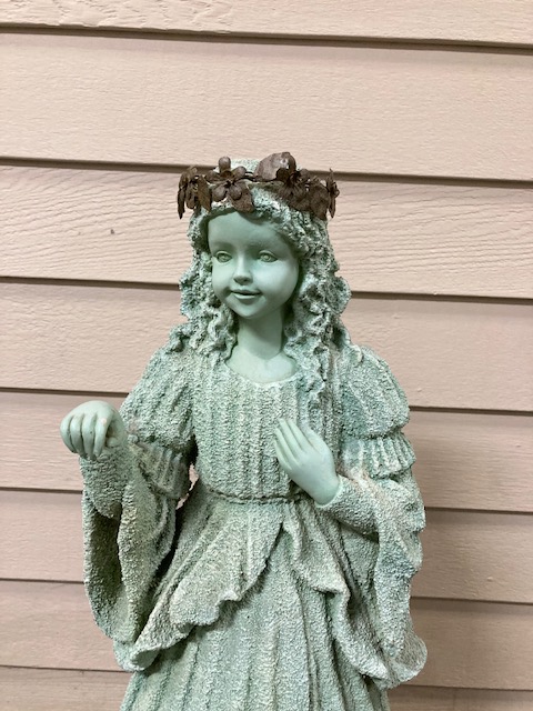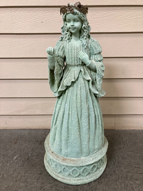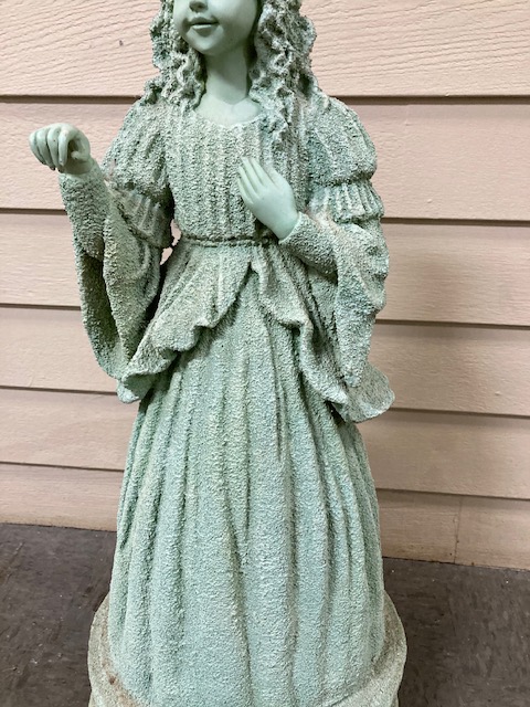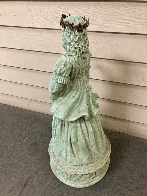 Condition: Excellent. She’s made of resin, not concrete, so she’s both reasonably lightweight and also in very good shape. There are just a couple of very minor chips, as well as the staining from garden dirt from being outside. She is just lovely.