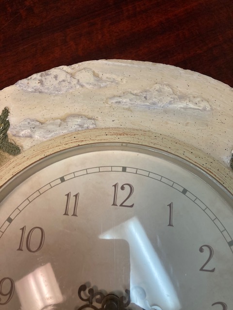 This clock is not vintage but it has that look look to it. It definitely would fit in well with a farmhouse or country theme.
