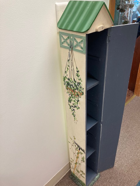 Tall, topiary themed shelf: 48″ high x 6″ deep x 6.5″ wide.