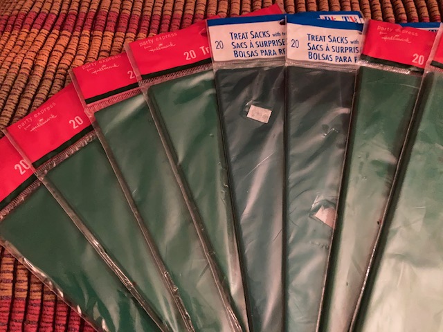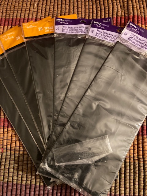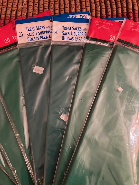 Here’s a lot of 27 packages of large “treat sacks”, all in new, unused, unopened condition. Each package contains 20 treat bags with twist ties, for a total of 540 treat bags in all!