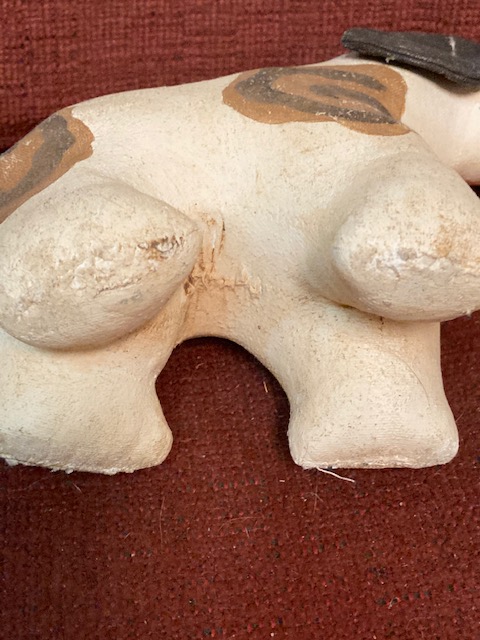 Condition: He’s in very good shape for his age, with all parts intact and no rips, tears or holes. Although apparently intended as a toy at least half a century or more ago, I wouldn’t let a child play with him now at his age. He’s best loved safely on a shelf somewhere.
