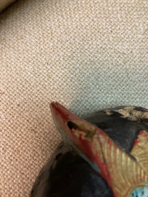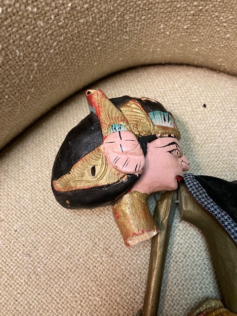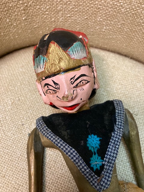 I bought this puppet for my daughter close to two decades ago. It was an antique then, and hasn’t changed at all in the intervening years, because my daughter wanted nothing to do with her. She ended up getting named “Creepy Doll”, and was put in storage. (I actually hesitate to call her that, for fear she’ll put a curse on me. I’m only half joking!)