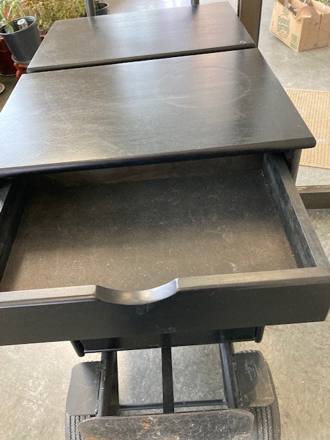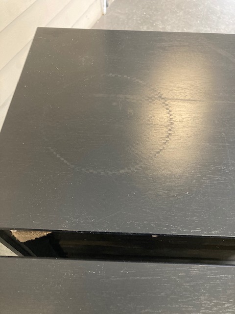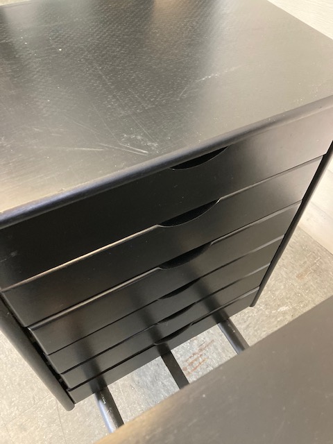Condition: One is in very good condition with few nicks, blemishes, flaws or other issues. The second cabinet has two areas worth pointing out: a circular mark on top that can be seen in certain light, which suggests a plant or hot pot might have been set on it. The second issue was a bit of a surprise: the back has been removed for some reason.. This isn’t noticeable unless and until you view the cabinet from behind, and doesn’t affect its usefulness, but it is indeed missing. Both are good and solid; the drawers slide easily.