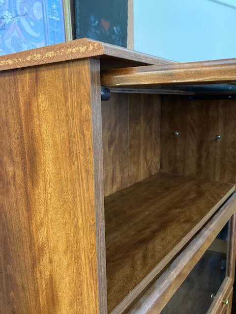 The plus to this barrister bookcase compared with the last one we had is that there are actually 8 shelves, rather than just the four it appears to have. Inside each section, is a glass shelf for smaller items. I unfortunately can’t show those shelves right now because when I picked up the bookcase, I took those shelves out for safe keeping – and left them behind! The auction house where I purchased this from is a 2.5 hour drive away (5 hours round trip!) so I won’t be able to pick them up until the next time I go to Bristol, which will probably be in March sometime.