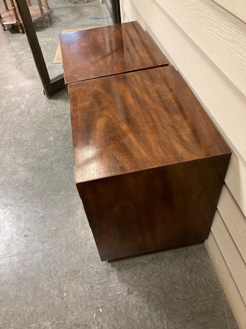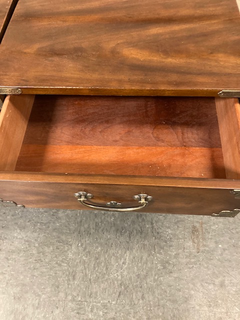 I love these brass edged side or end tables… they would fit in extremely well with a few other pieces I own that evoke images of Hemingway and libraries and understated strength. However, I have no room for them so off to another home they must go!