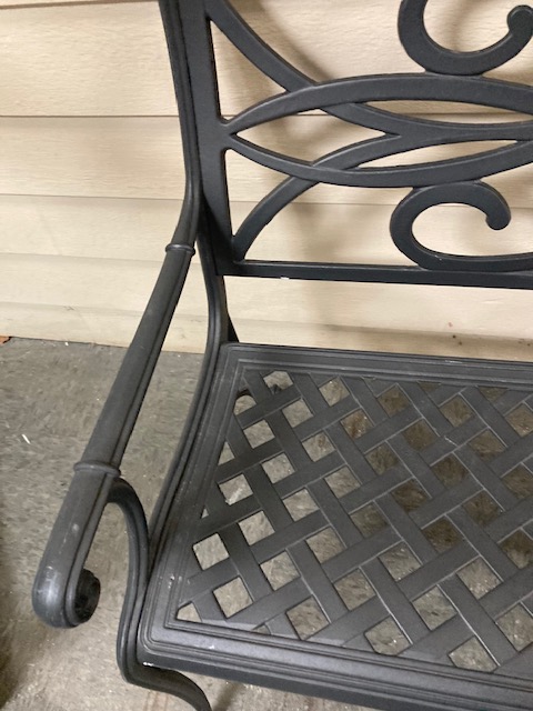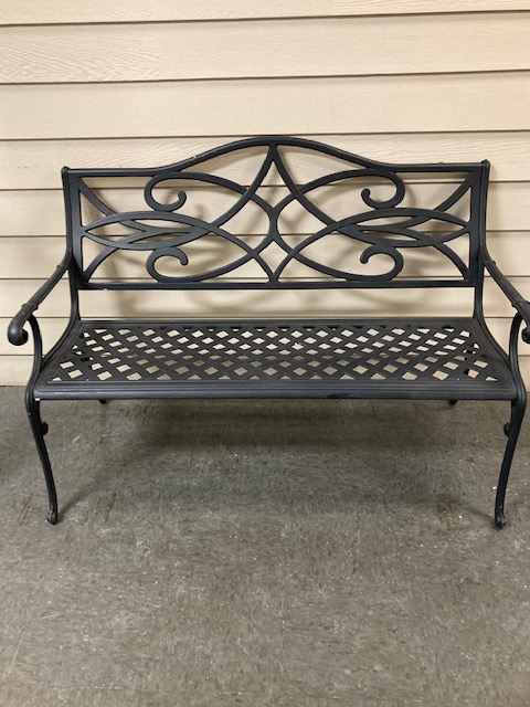 1 Black aluminum patio bench, no blemishes/white patches: $95.00.