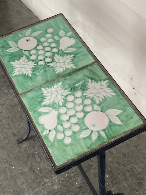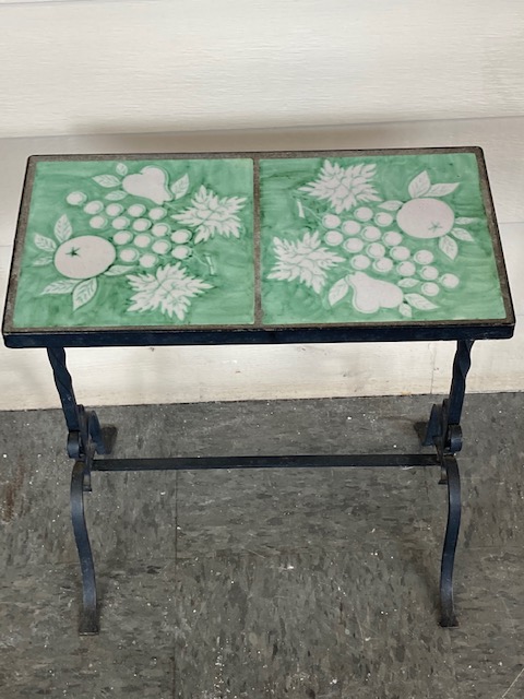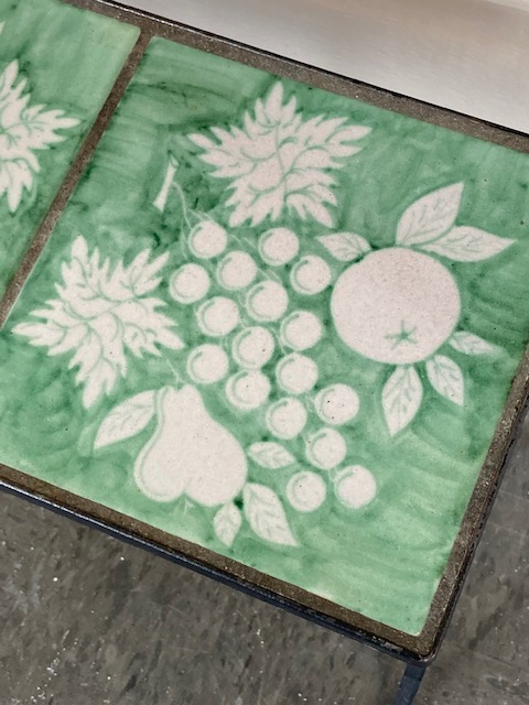 Condition: It’s in good solid condition, with very minimal rust under the legs.. There are no cracks or breaks in the tiles.