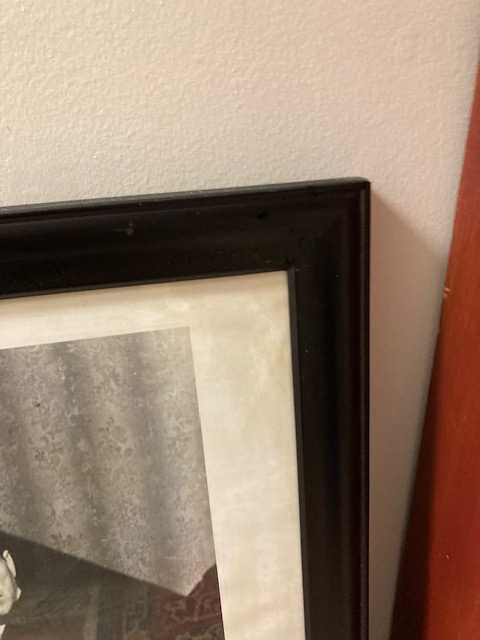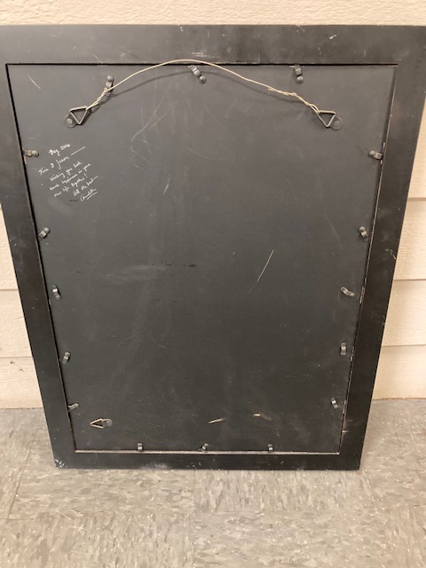 Condition: It’s in very good, solid condition with very few nicks or blemishes in the frame or backing. It was apparently given as a wedding gift a few years ago as there’s an inscription on the back referencing a couple’s new life together.