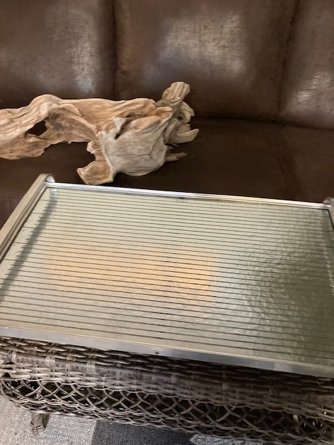 By the way, you can see my blurred reflection, as well as those of other items in the room, on the tray’s surface. It’s pretty shiny. Oh, and that’s a large piece of driftwood in the background of a couple of photos. (The driftwood is also for sale; see this post: https://heritagecollectiblesmaine.com/2021/01/30/large-driftwood-can-you-see-the-horses-head/).
