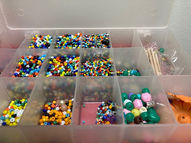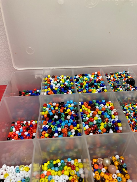 Just found these in storage! There are lots and lots of colorful, little tiny plastic beads, as well as other crafting type items!