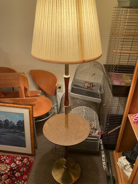 I suspect we all remember this style, with the small round table in the center of the lamp frame. A great space saver, for sure!