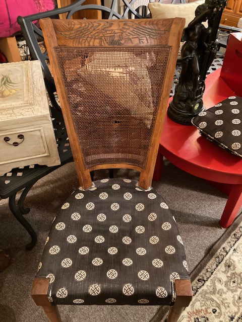 I loved this chair when I saw it at the auction house, even though it had a couple of small breaks in the caning on the back.