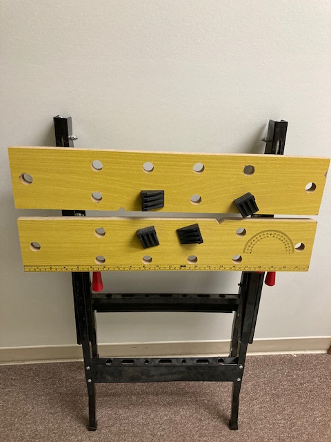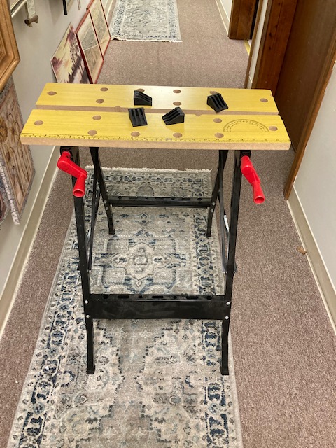 This was my late husband’s workbench, which he kept in the mancave and used when puttering and putting together endless models of airplanes. (They’re all still hanging from the ceiling of his 750 sf mancave – when he ran out of ceiling space, he started hanging them from the rafters in our garage. I haven’t moved or removed any of them.)