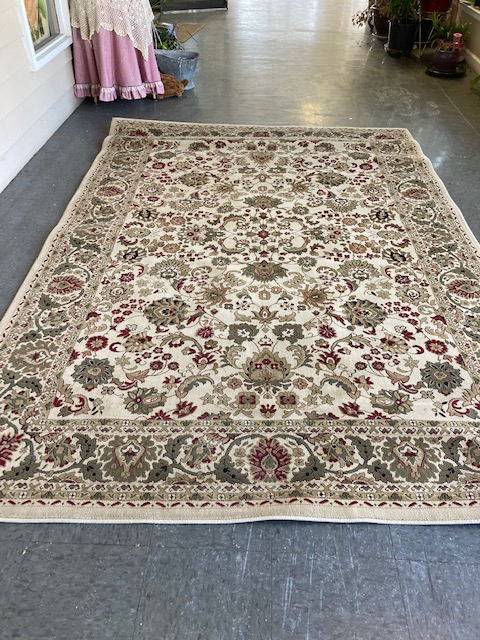 This is a beautiful, heavy room-sized Persian rug in what appears to be perfect condition. It’s been rolled up for a while so needs some time to “flatten out”, but other than that, I found no problems with it at all.