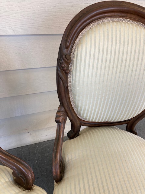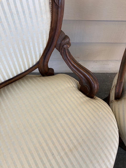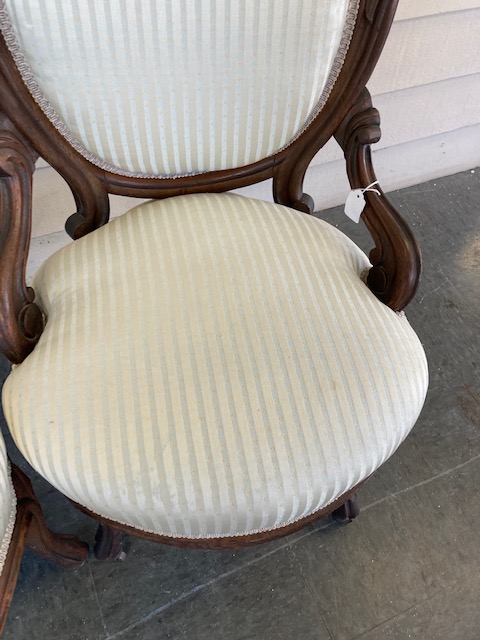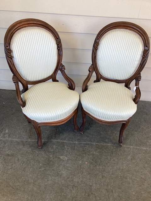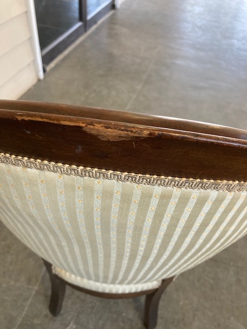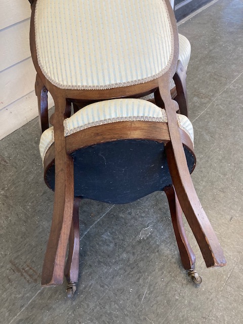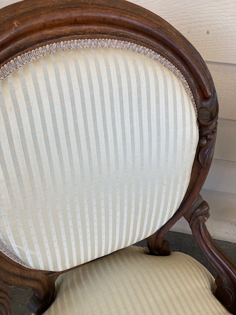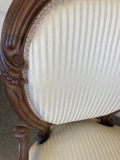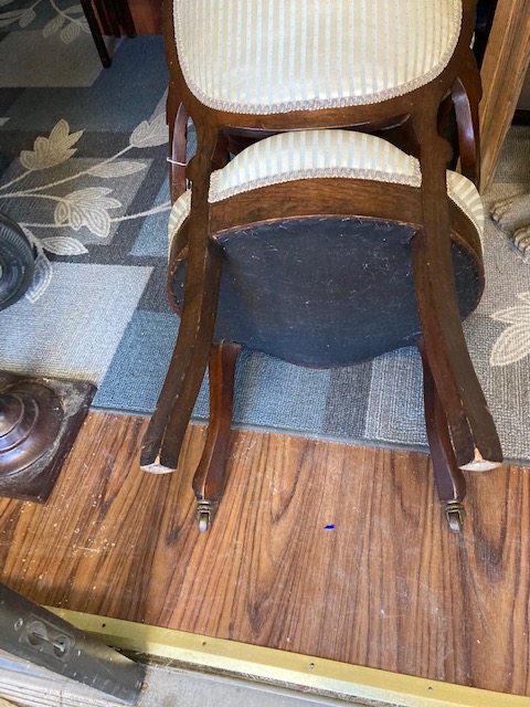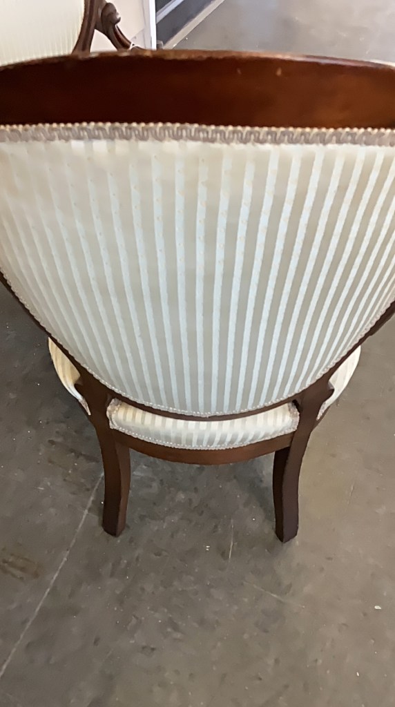These matching white Victorian era ladies chairs with their light blue striped upholstery are just lovely. I’d buy them from the business if I had any spare room, but alas! Off they go to you good people, who hopefully will love them as I do.
