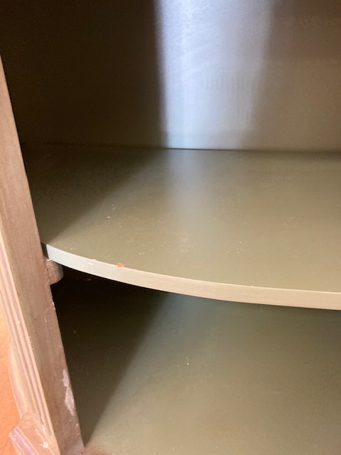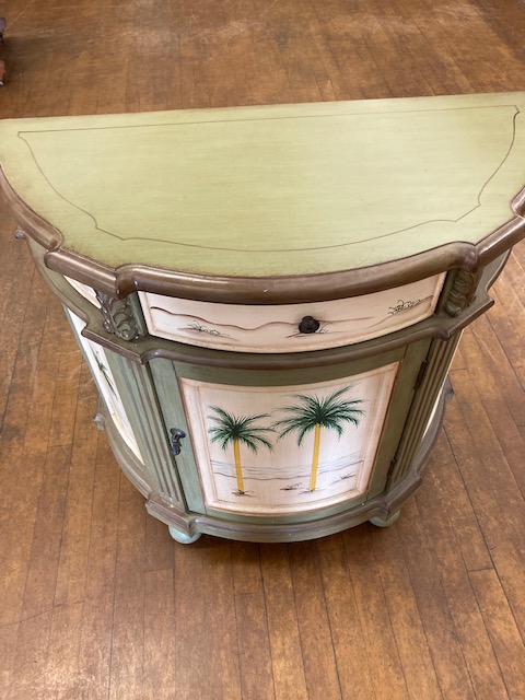 This wonderful half moon type cabinet apparently came from such a shop. And it certainly meets the expectation of what you’d find there.