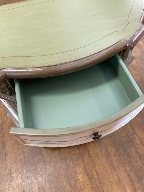 The piece has a drawer on top and a door below that opens into a roomy cabinet with a shelf
