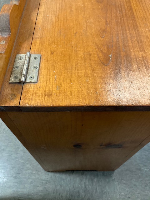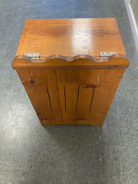 The auctioneer called this a vegetable bin, which makes sense because of the long narrow air circulation holes built into the back of the cabinet.