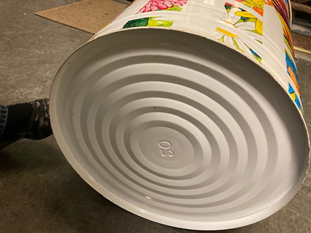 I have searched and searched and searched but have not been able to find a trash can of this size and decorative painting posted for sale anywhere. I would have expected that there must be others out there, but I can’t find any on Etsy, Amazon, eBay, Worthpoint, Wayfair, Lowe’s, Home Depot, or anywhere else. I really doubt it’s a home-painted piece because it seems to have been done commercially, but then again?