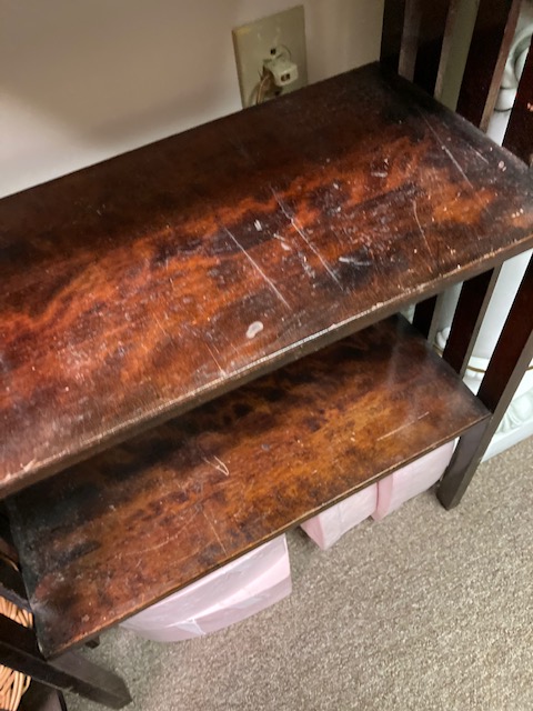 However, like too many antiques, it’s borne some surface damage over the years. I don’t know anything about refinishing furniture, but if done well, when the blemishes on top are cleaned up, you will have a truly beautiful piece, worth passing down through future generations.
