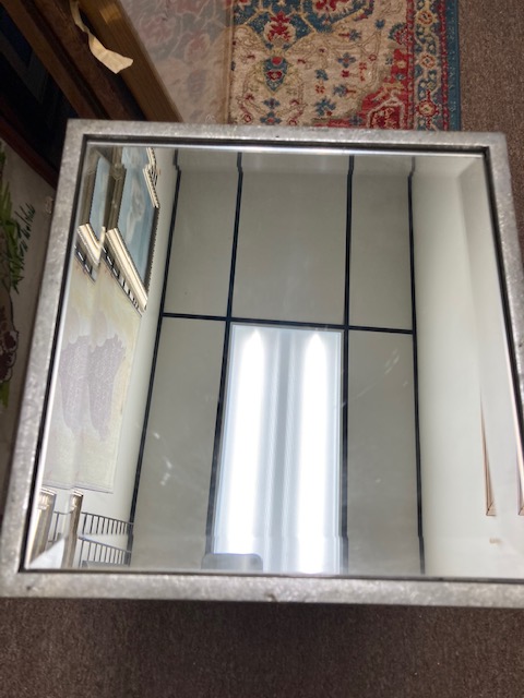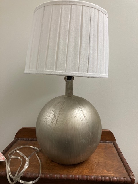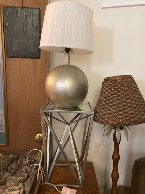 This silver & white lamp with matching end table / stand with mirrored surface would have fit perfectly in that house.