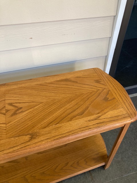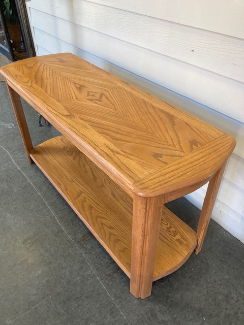 Imagine this table with your favorite rock or mineral collection, coffee table books, or even a nice flower arrangement. It’s sturdy, with very little wear, and can be placed against a wall or behind your couch.