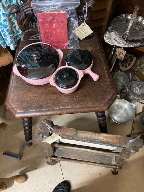 Special Orders. If there’s something you’re looking for – whether it’s antique, vintage or contemporary; furniture, art, spiritual (ancients, indigenous, other), tools, collectibles, funky, or what-have-you— we’re happy to search out such items. Presuming they’re available in your price range, condition and so forth, we can obtain the item and if you purchase it immediately, we’ll take 25% off what would otherwise be our retail price. We won’t bid on something without checking with you first, unless we’re positive we can sell it anyway! Give Linda a call at 207-740-2247.