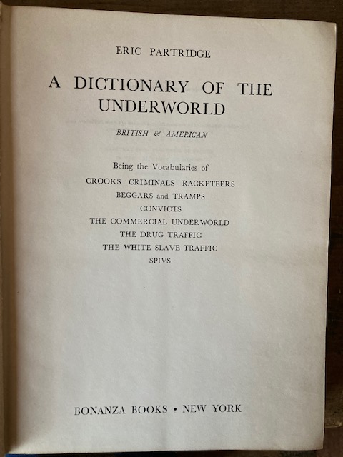 A Dictionary of the Underworld – British and American, by Eric Partridge. 1961