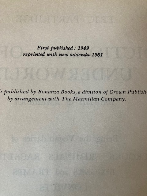 A Dictionary of the Underworld – British and American, by Eric Partridge. 1961